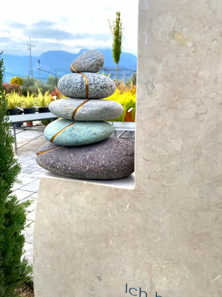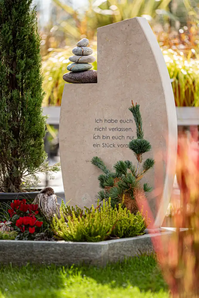In der Grabgestaltung steht ein Steinmännchen oft für Erinnerung, Verbundenheit und Dankbarkeit. Jeder aufgeschichtete Stein kann als Zeichen des Andenkens an den Verstorbenen gesehen werden.