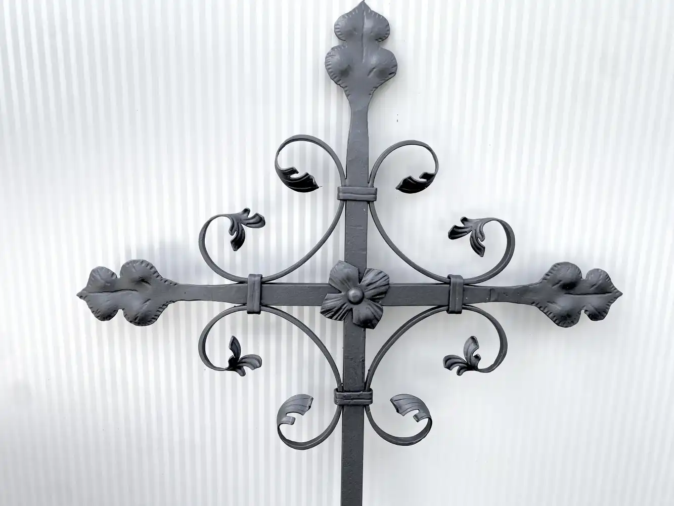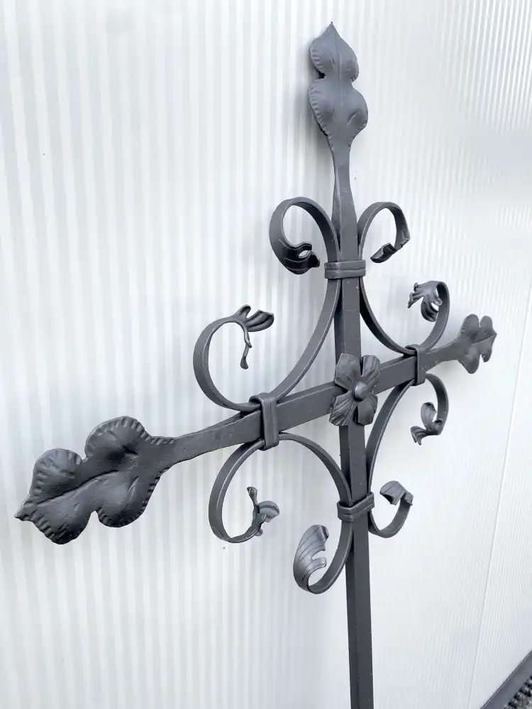 Croce decorativa in ferro battuto con ornamenti artistici e decorazioni a foglia finemente lavorate. Il fascino dell’artigianato tradizionale – armonioso, dettagliato e intramontabile nel suo design.